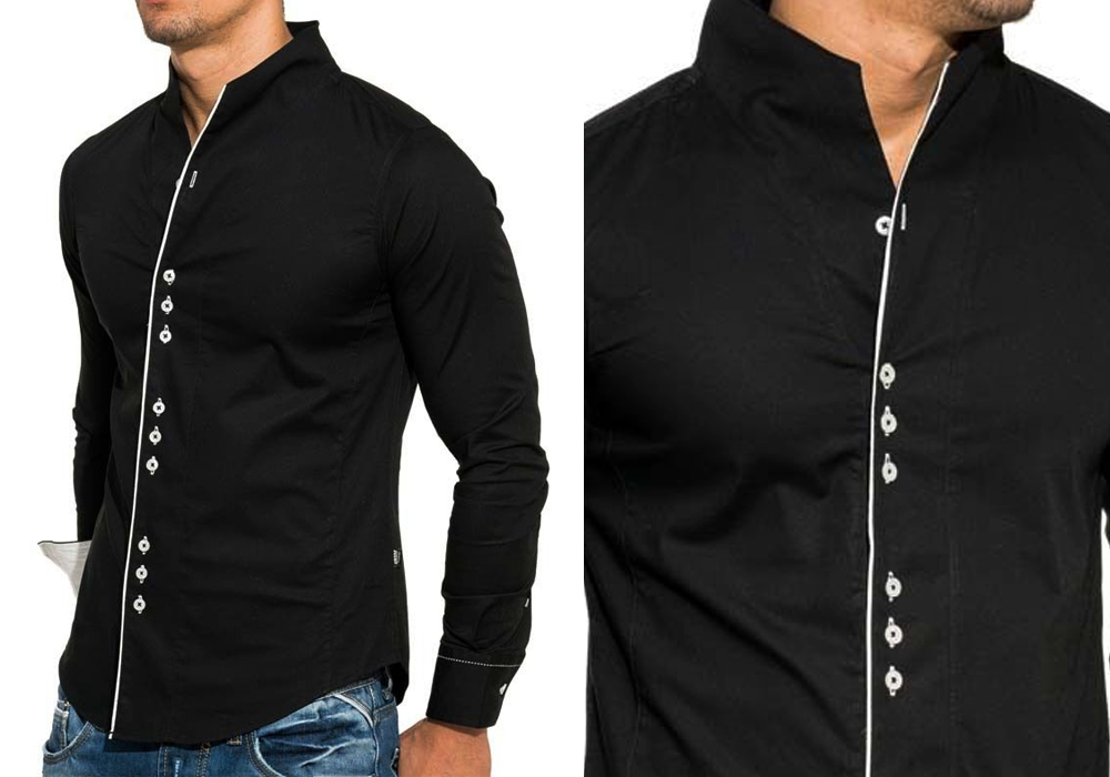 Czarna męska koszula ze stójką zapinana do połowy. Koszula Męska Stójka Bez Kołnierza Elegancka. Korzystaj z aktualnych wyprzedaży i promocji - oszczędzaj pieniądze i czas.