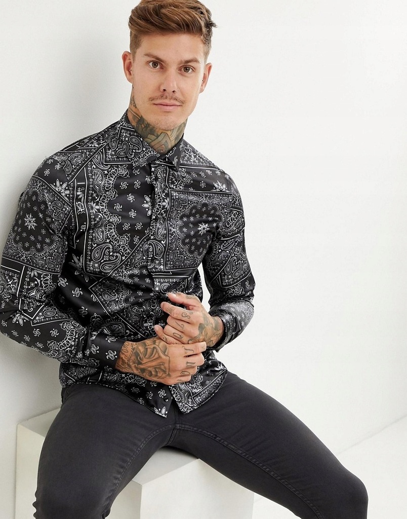 Koszula Meska Satynowa We Wzory Czarna M Dua 10021442396 Oficjalne Archiwum Allegro