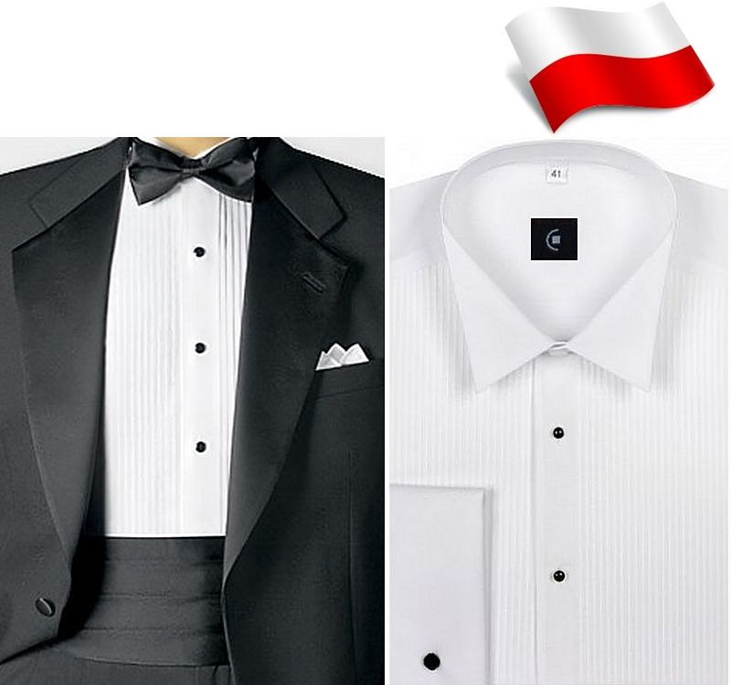 Biała koszula męska smokingowa z łamanym kołnierzykiem krytą listwą i plisami SLIM FIT Prezentowany produkt to biała koszula smokingowa klasyczna i elegancka. Nieruchomości Motoryzacja Komputery Meble Antyki Telefony Sprzęt sportowy i inne. Do kompletu jest również koszula smokingowa z plisami zapinana na czarne guziczki oraz czarne klasyczne lakierki ze skóry naturalnej rozm.